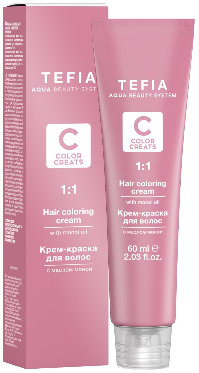 Tefia Color Creats крем-краска для волос Hair Coloring Cream with Monoi Oil, Т 10.21 Тонер ваниль, 60 мл