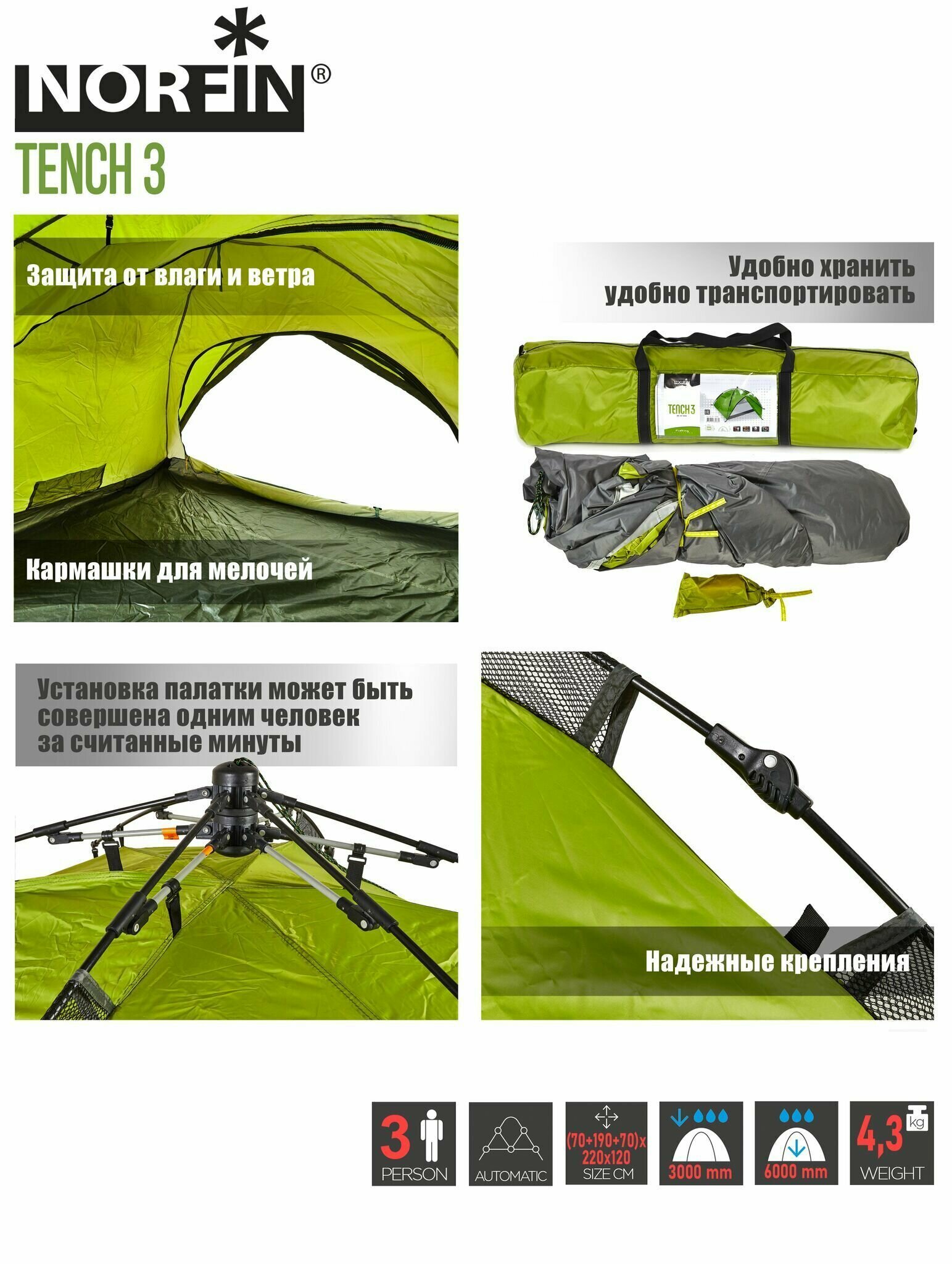Палатка автоматическая 3-х местная Norfin TENCH 3 NF интересное:
