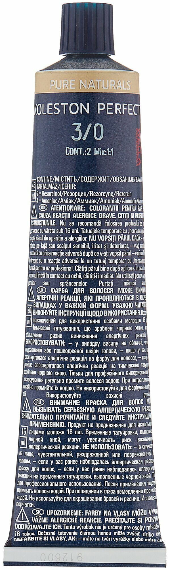 Купить Wella Professionals Koleston Perfect Pure Naturals Краска для волос, 3/0 темно-коричневый, 60 мл