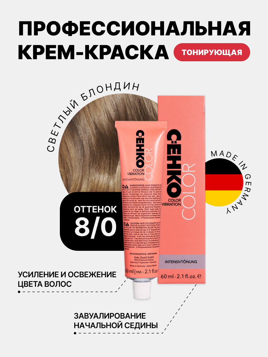 C:EHKO Крем-краска для волос Color Vibration 8/0 Светлый блондин 60 мл