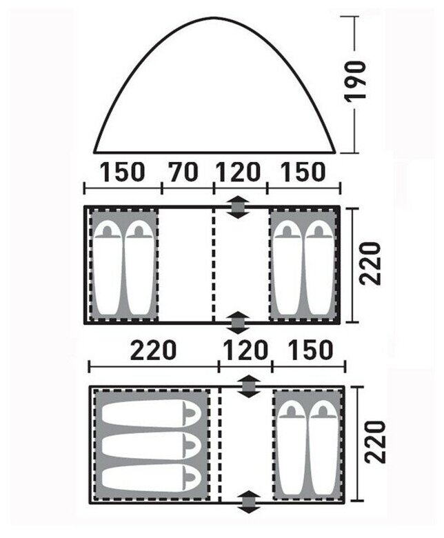 | Ширина внешней палатки | 220 см |