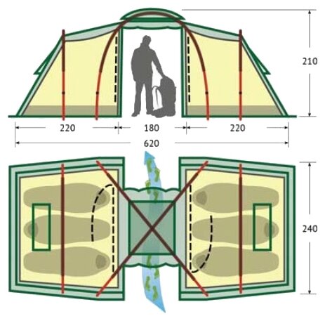| Длина внешней палатки | 620 см |