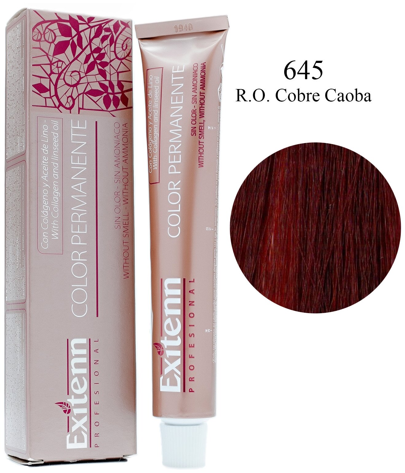Купить Exitenn Professional Безаммиачная крем-краска для волос Color Permanente 645 R.O. Cobre Caoba/Тёмный блонд медно-красный 60 мл