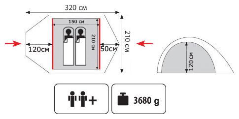 | Длина внешней палатки | 320 см |