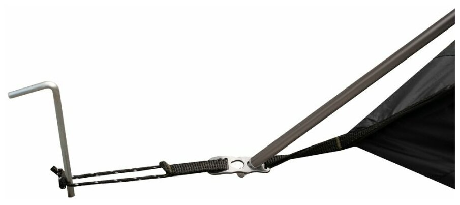 Большой основной тамбур. "Экзотические" колышки крестообразного профиля позволяют воткнуться в относительно тонкий земляной покров. |
