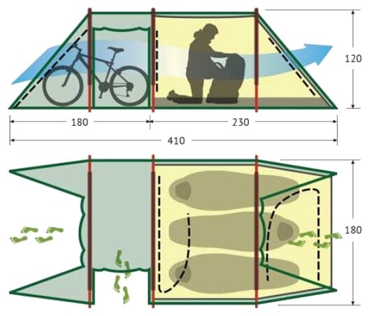 | Длина внешней палатки | 410 см |