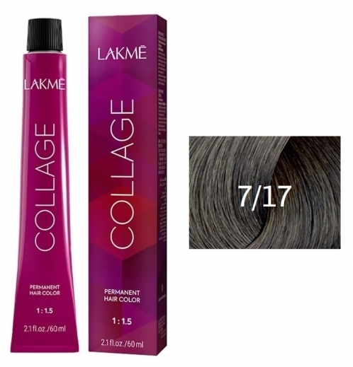 LAKMÉ, COLLAGE, Перманентная крем-краска для волос №7/17, Средний блондин пепельный, 60 мл