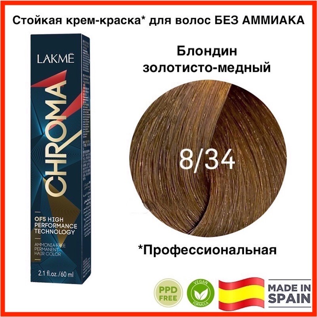 Купить Перманентный краситель 8/34 блондин золотисто-медный chroma, Lakme