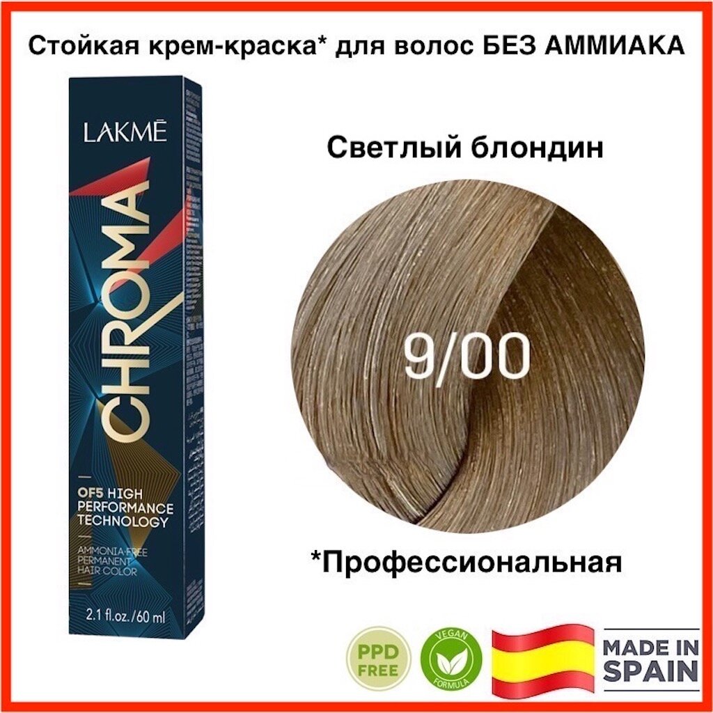 LAKMÉ, CHROMA DEVELOPER, Перманентная безаммиачная крем-краска №9/00, Светлый блондин, 60 мл
