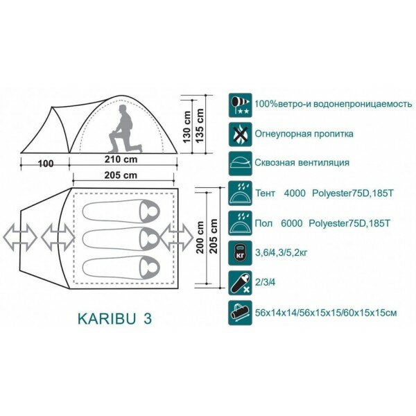 Палатка Canadian Camper KARIBU 3, цвет royal интересное: