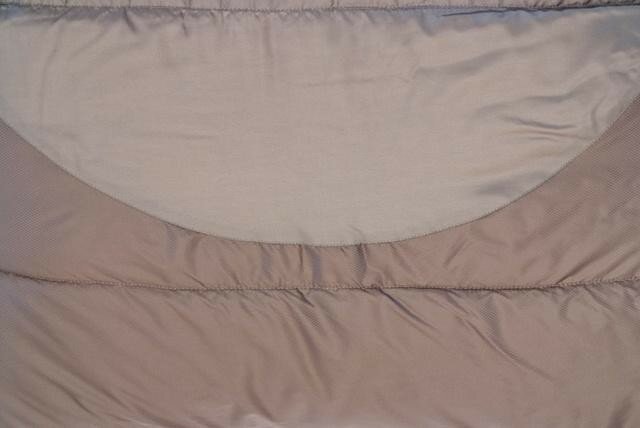 Пристёжка используется для походной подушки, на которой спит пёс, а я просто скатываю в рулон флиску и засовываю в карман. Пристежка закрывается почти наглухо с головой, когда полностью закрываешь замки, у меня рост 180, ничего не мешает. В минусовую погоду верх спальника мокнет к утру, но внутри сухо. |
