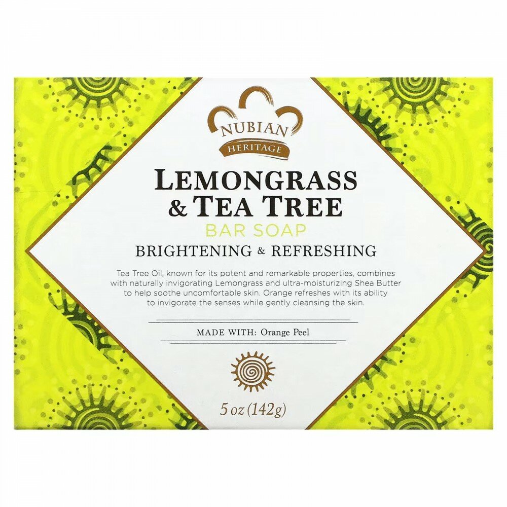 Купить Nubian Heritage, Кусковое мыло с лемонграссом и чайным деревом, 142 г