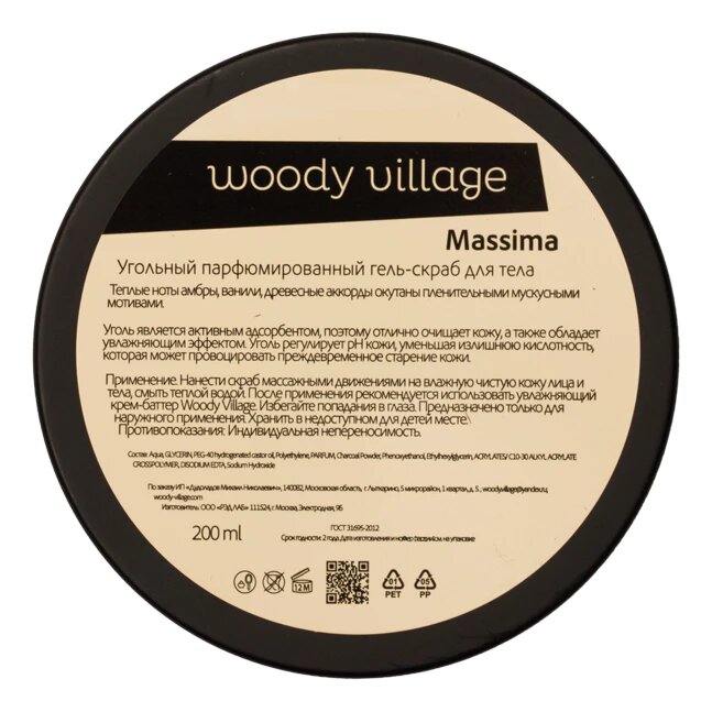 Угольный парфюмерный гель-скраб для тела Woody Village Massima 200 мл интересное:
