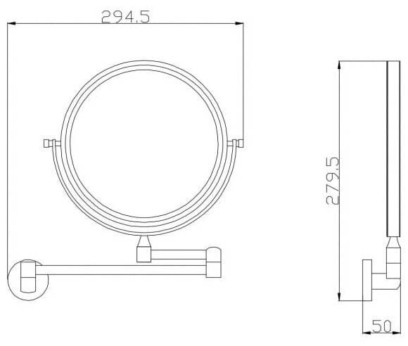 Косметическое зеркало круглое 2-х сторонее (увеличение х 5) с настенным держателем, RAV-SLEZAK, COA1100