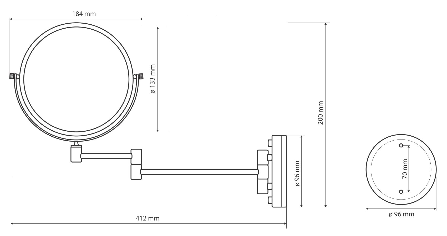 Зеркало настольное круглое железное двустороннее разного увеличения 16 см