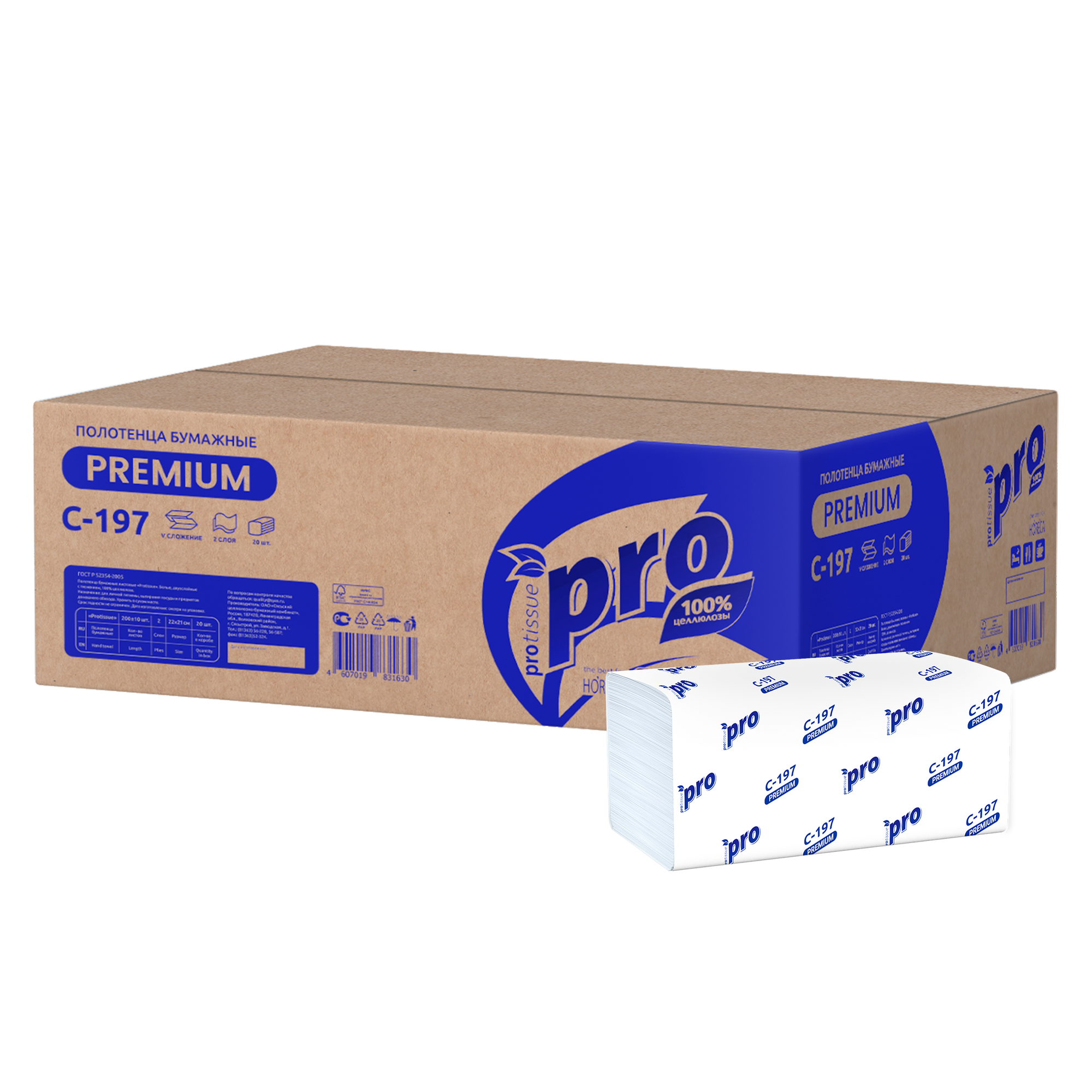 Полотенца бумажные Protissue Premium C-197 V-сложения двухслойные, 20 уп. 200 лист.