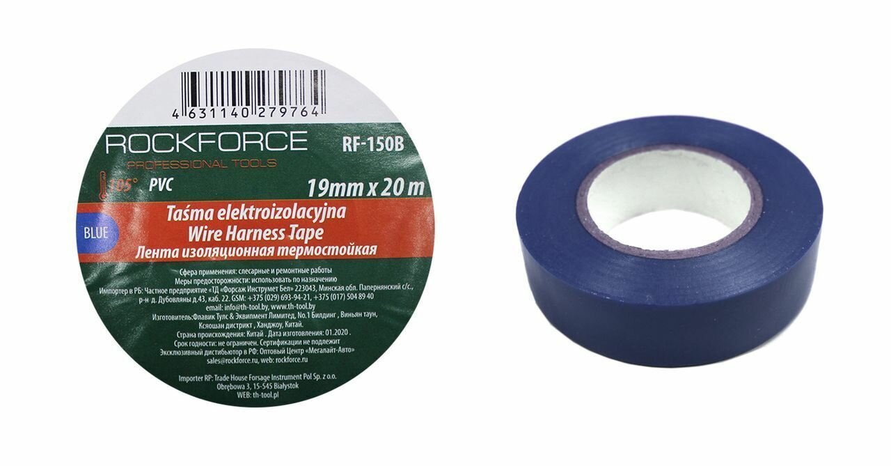 Изолента Пвх Синяя 19Ммx20м Термостойкая Rockforce ROCK FORCE арт. RF150B