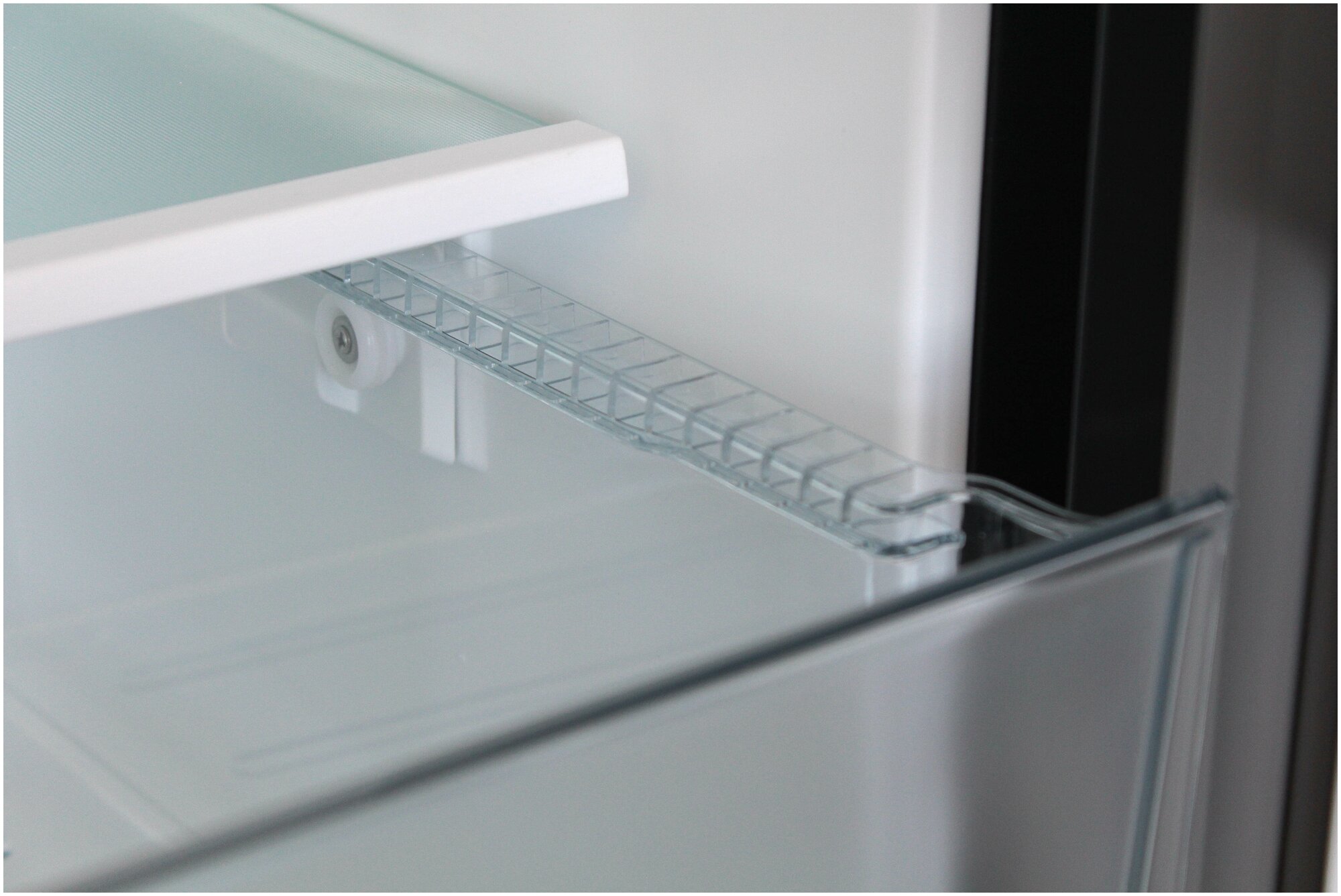 | Минусы: | Сплошной нижний ящик в холодильной камере. |