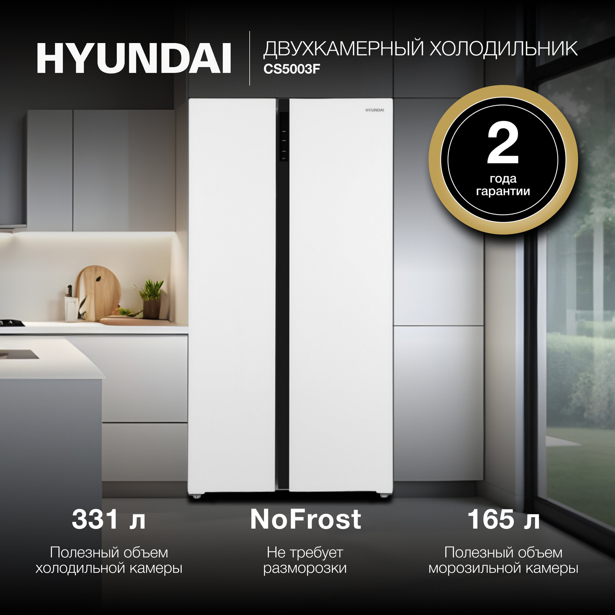 Холодильник Hyundai CS5003F, белое стекло