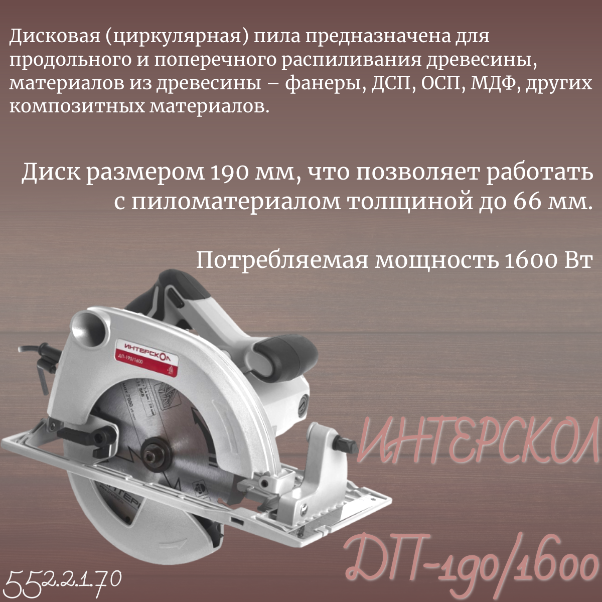 Пила дисковая ДП-190/1600 | код. 552.2.1.70 | ИНТЕРСКОЛ ( 1шт. )
