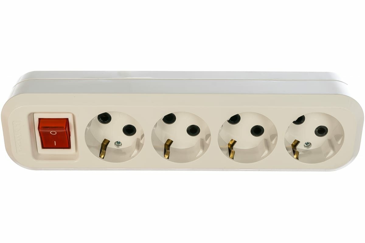 Колодка удлинителя 4 поста с выключателем с заземлением UNIVersal S304, белый