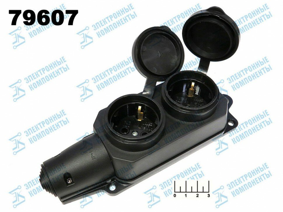 Розетка электрическая 2* на кабель с землей резиновая с крышкой Smartbuy/Universal SBE-16-2-00-R