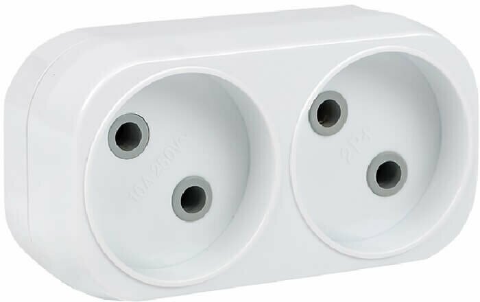 Тройник на 2 розетки без заземления 6А | код ARP6-2 | EKF (1 шт.)