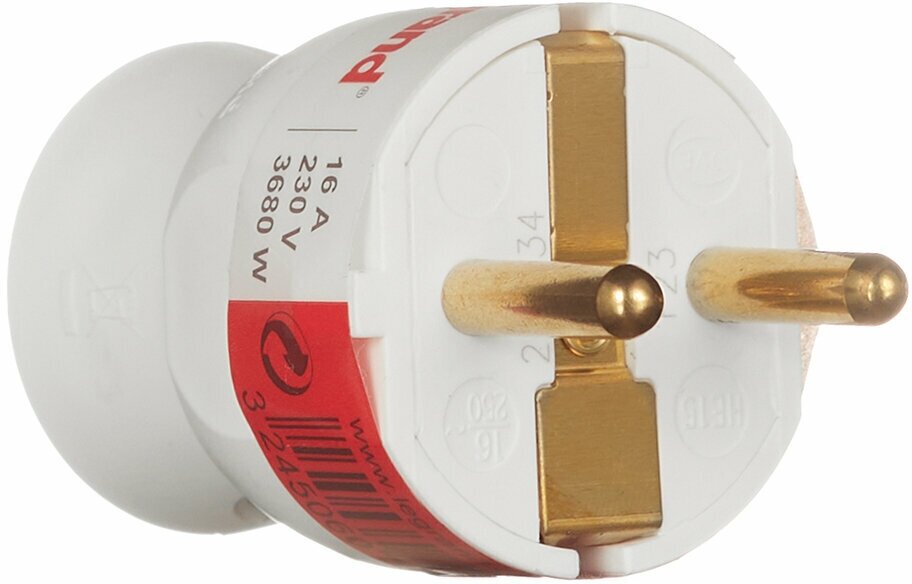 Вилка бытовая Legrand Helium (50188) угловая с заземлением 16 А 230 В IP20 белая