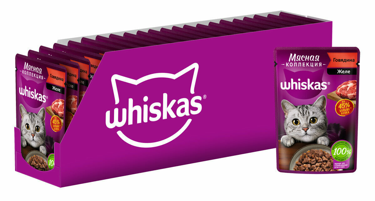 Whiskas влажный корм для кошек, мясная коллекция, говядина в желе (28шт в уп) 75 гр