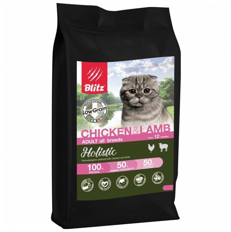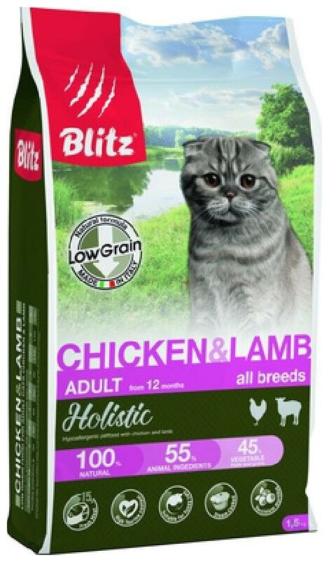 BLITZ HOLISTIC LOW-GRAIN ADULT CAT CHICKEN & LAMB низкозерновой для взрослых кошек всех пород с курицей и ягненком (1,5 кг)