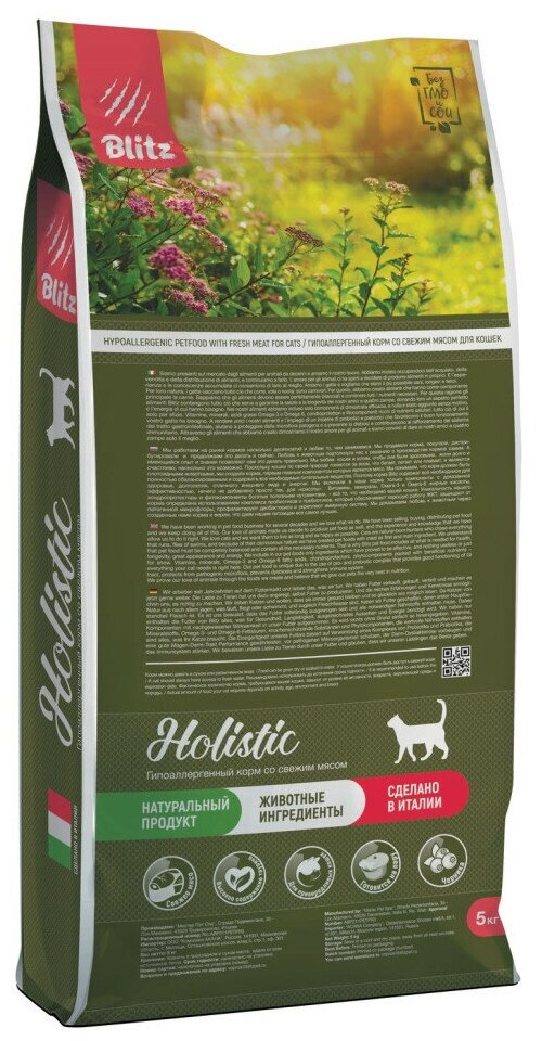 Купить BLITZ Holistic 891 ADULT CAT CHICKEN & LAMB низкозерновой корм для кошек Курица и Ягненок 5 кг