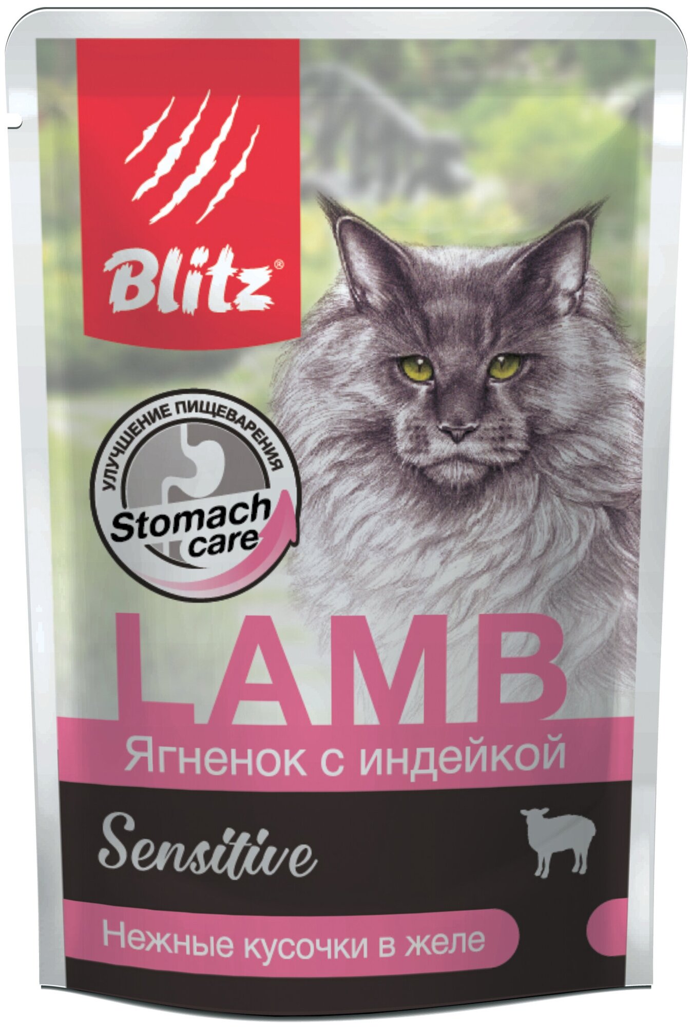 BLITZ SENSITIVE для взрослых кошек с чувств пищеварением с ягненком и инд в желе пауч 85 гр 85 гр х 8 шт