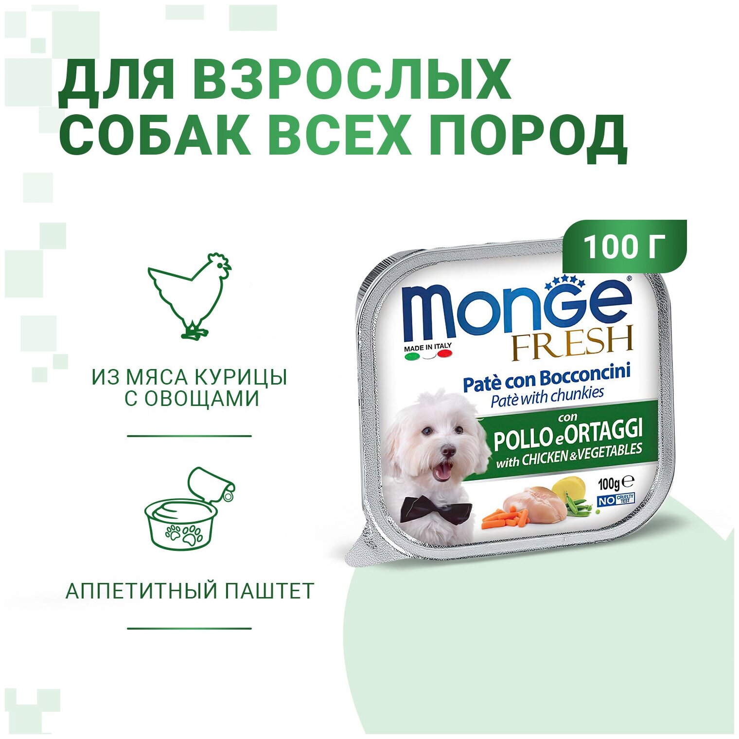 Влажный корм для собак Monge Fresh, курица, с овощами 1 уп. х 16 шт. х 100 г