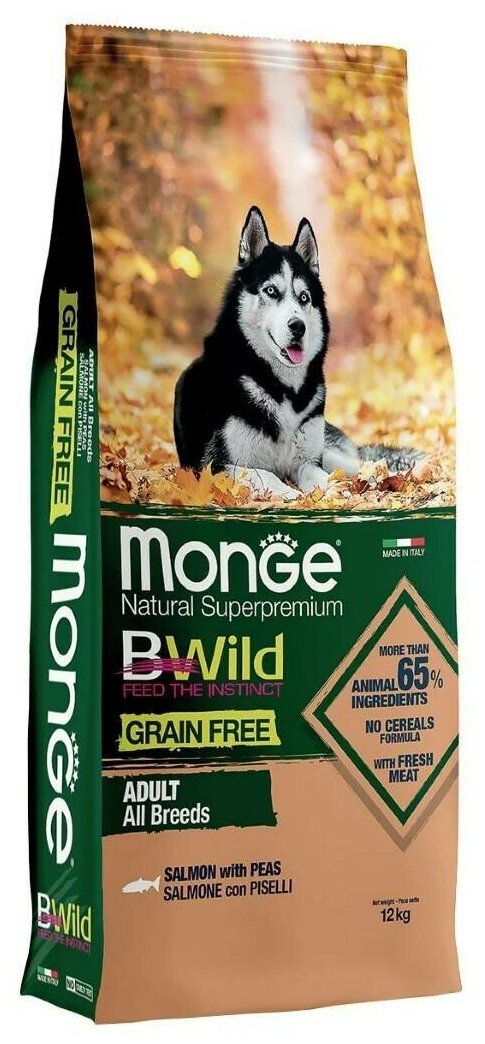 Сухой корм для собак Monge BWILD Feed the Instinct, лосось, с горошком 1 уп. х 1 шт. х 12 кг