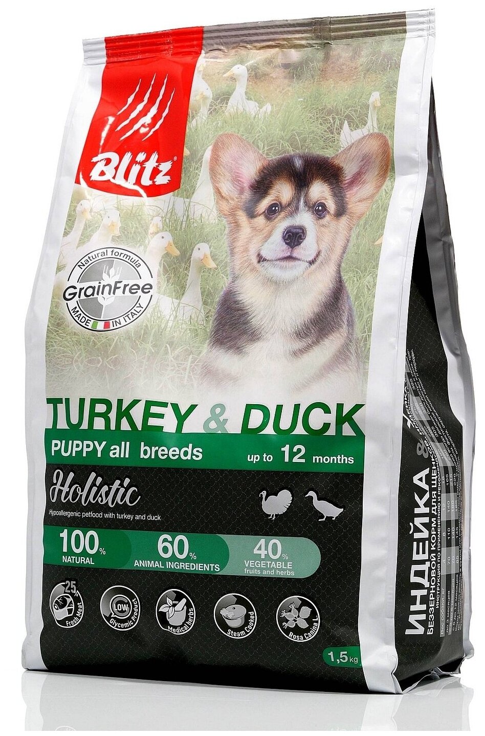 Сухой корм BLITZ HOLISTIC GRAIN FREE PUPPY TURKEY & DUCK беззерновой для щенков всех пород с индейкой и уткой (1,5 кг)