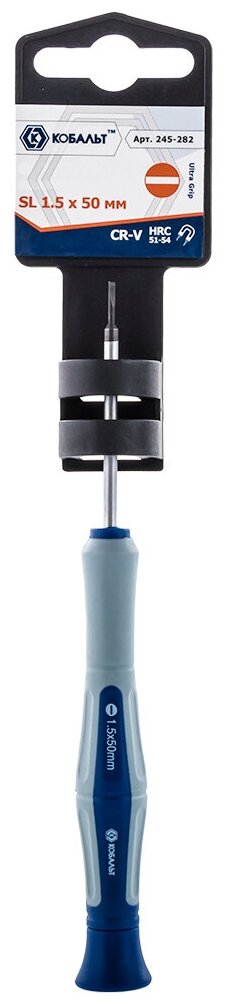 Отвертка для точных работ кобальт Ultra Grip SL 1.5 х 50 ммCR-V, двухкомпонентная рукоятка (1 шт.) подвес (1 шт., подвес) интересное: