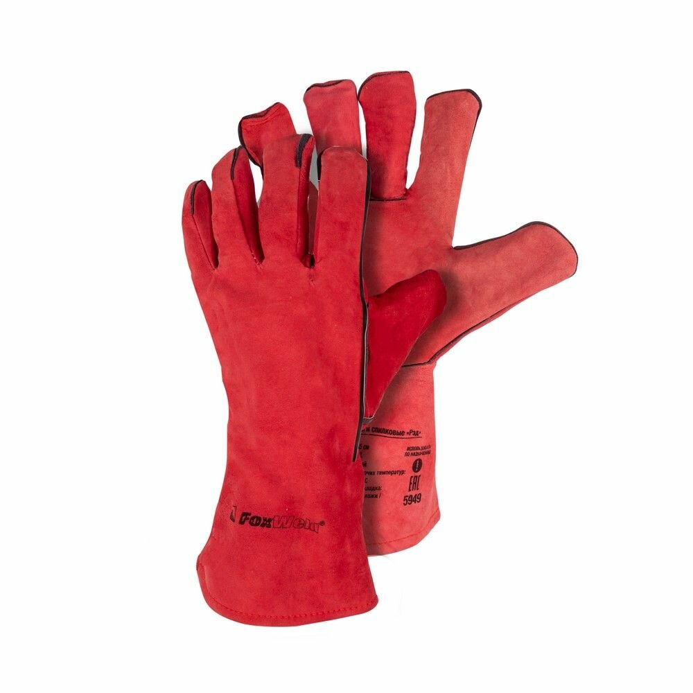 Краги сварочные / Перчатки защитные / спилковые (L) FoxWeld "РЭД", 5949