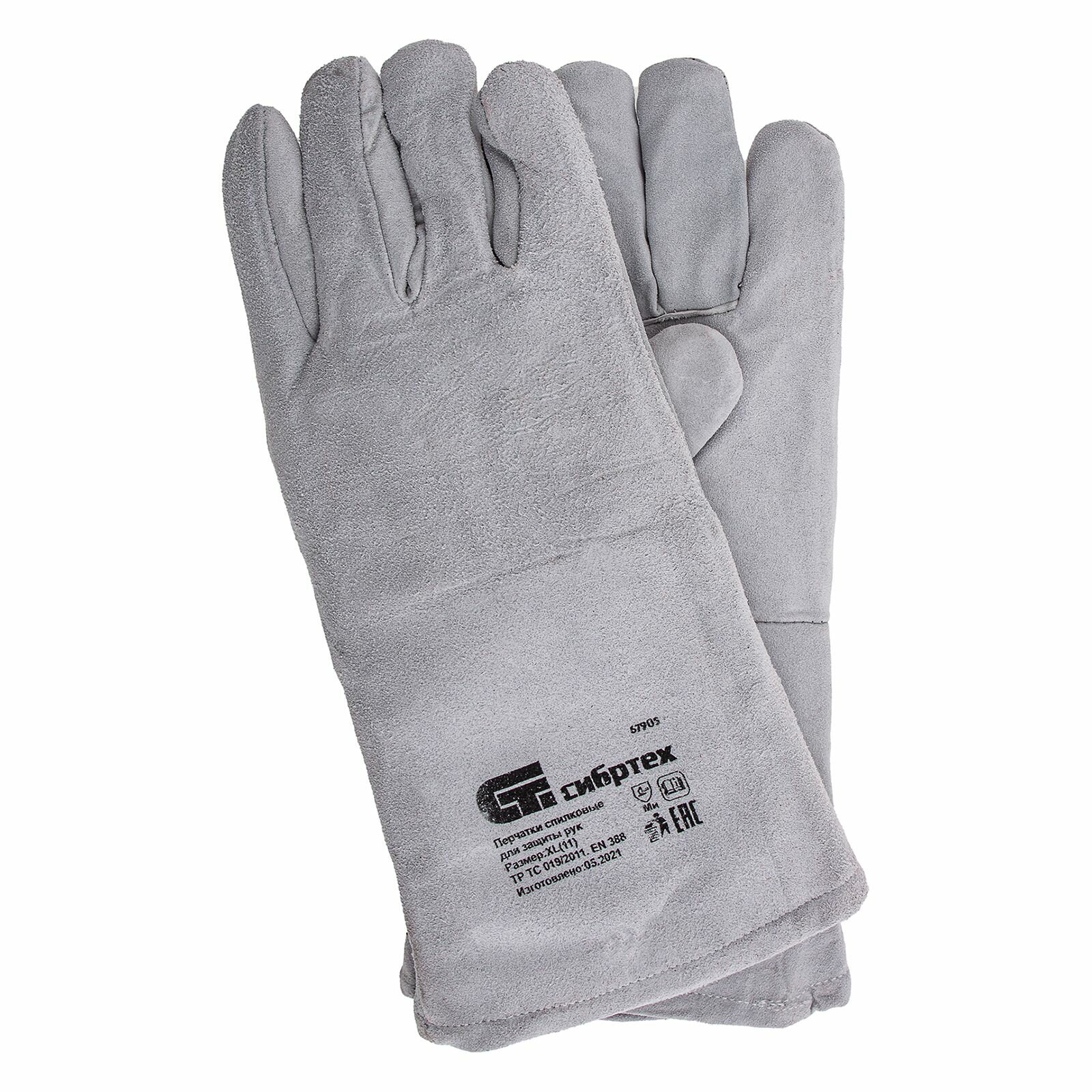 Перчатки спилковые с манжетой для садовых и строительных работ Сибртех утолщенные, размер XL 67905