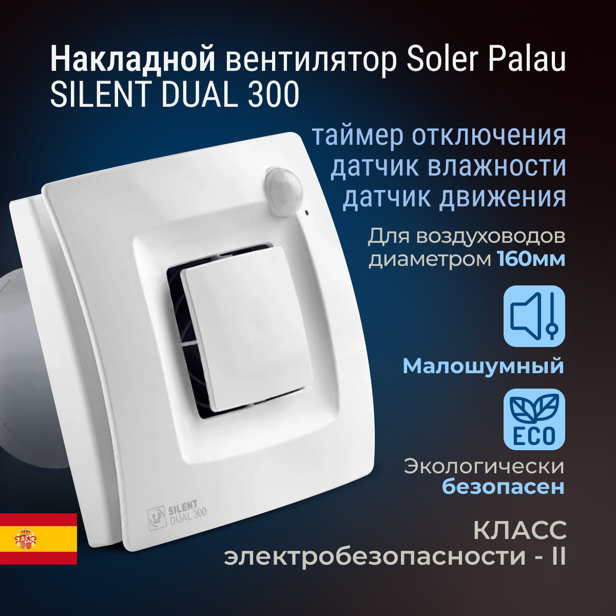 Soler & Palau Вентилятор накладной Soler & Palau Silent Dual 300 (таймер, датчик влажности, датчик движения, программируемый)