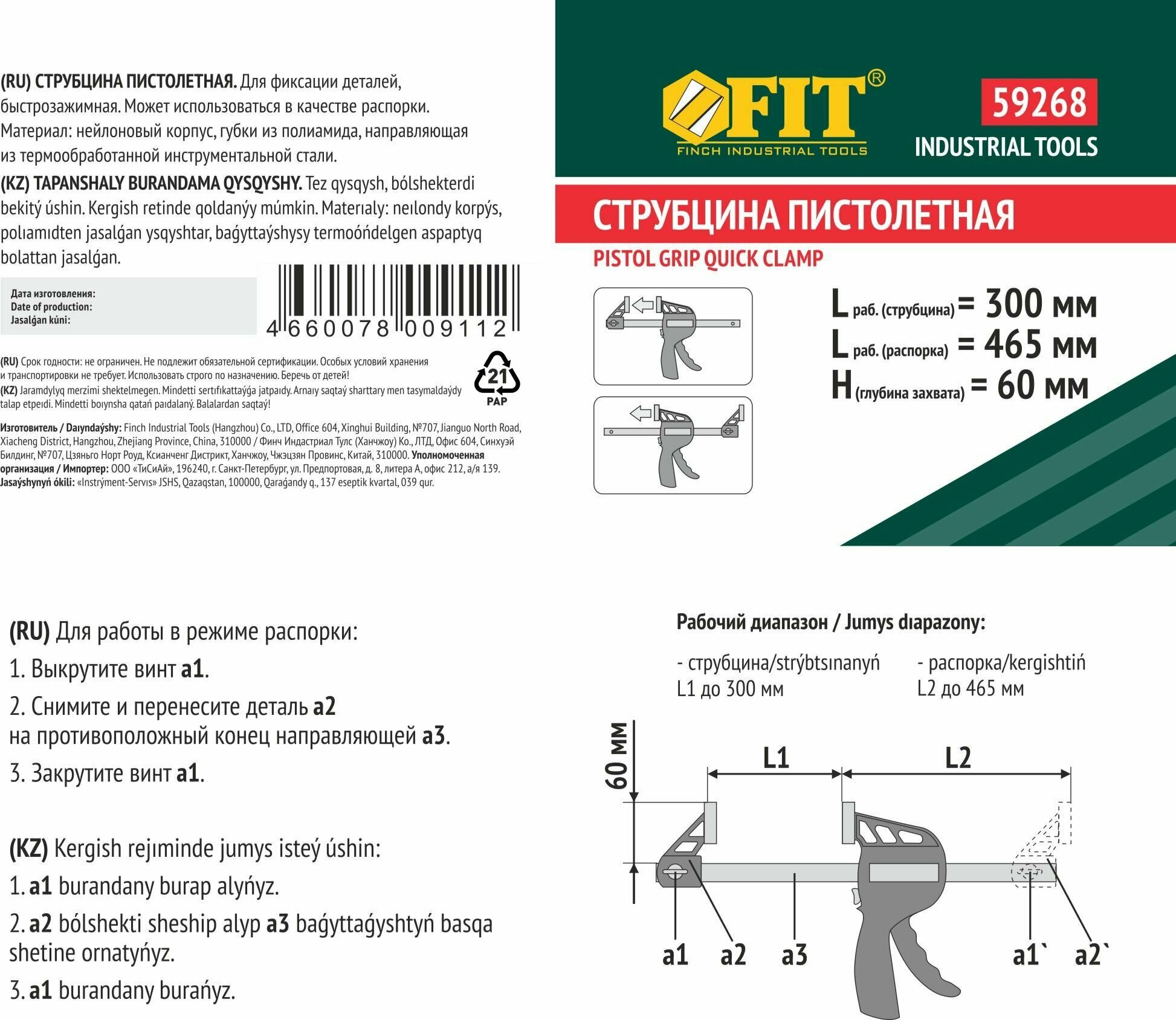 Струбцина Пистолетная Нейл 300Х465Х60ММ FIT (24) 59268 . интересное: