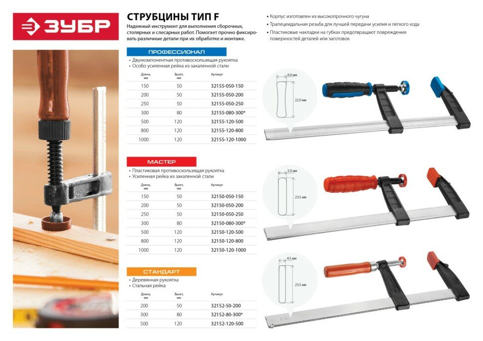 Ниже Вы можете прочитать отзывы на Усиленная струбцина ЗУБР ПС-250/50 F 250х50 мм 32155-050-250, ознакомится с подробными характеристиками, посмотреть интересные обзоры и фотографии на Усиленная струбцина ЗУБР ПС-250/50 F 250х50 мм 32155-050-250.