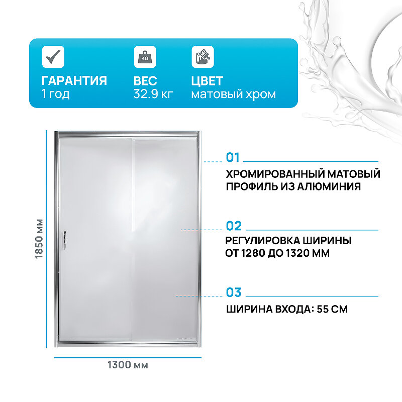 Душевая дверь в нишу River Bering 130 МТ 10000000038 профиль матовый хром, стекло матовое