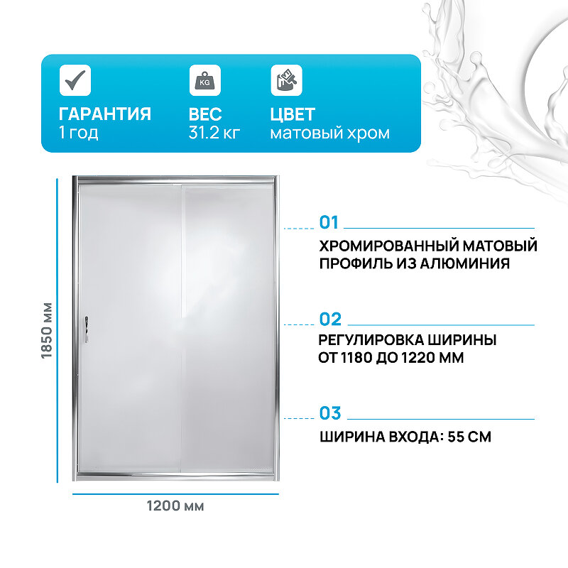Душевая дверь в нишу River Bering 120 МТ 10000000721 профиль Матовый хром стекло матовое