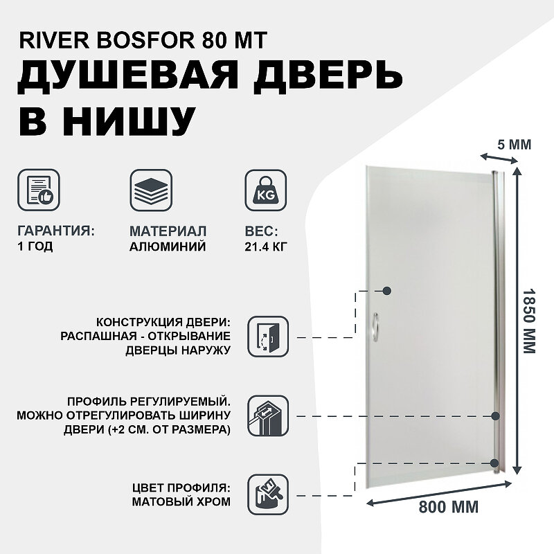 Душевая дверь в нишу River Bosfor 80 МТ 10000001113 профиль Матовый хром стекло матовое