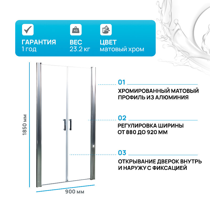 Душевая дверь в нишу River Suez 90 МТ 10000001536 профиль Матовый хром стекло матовое
