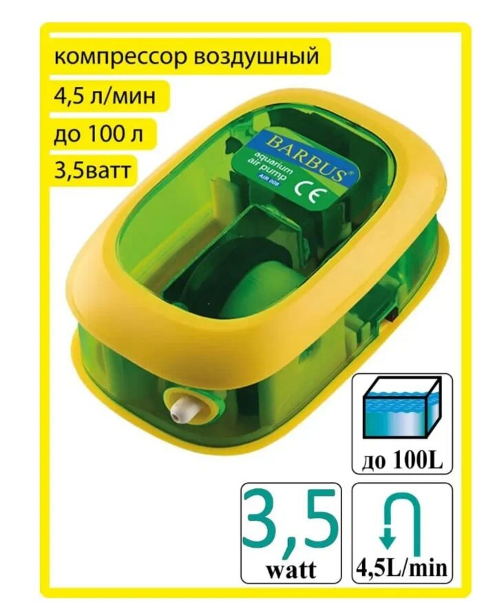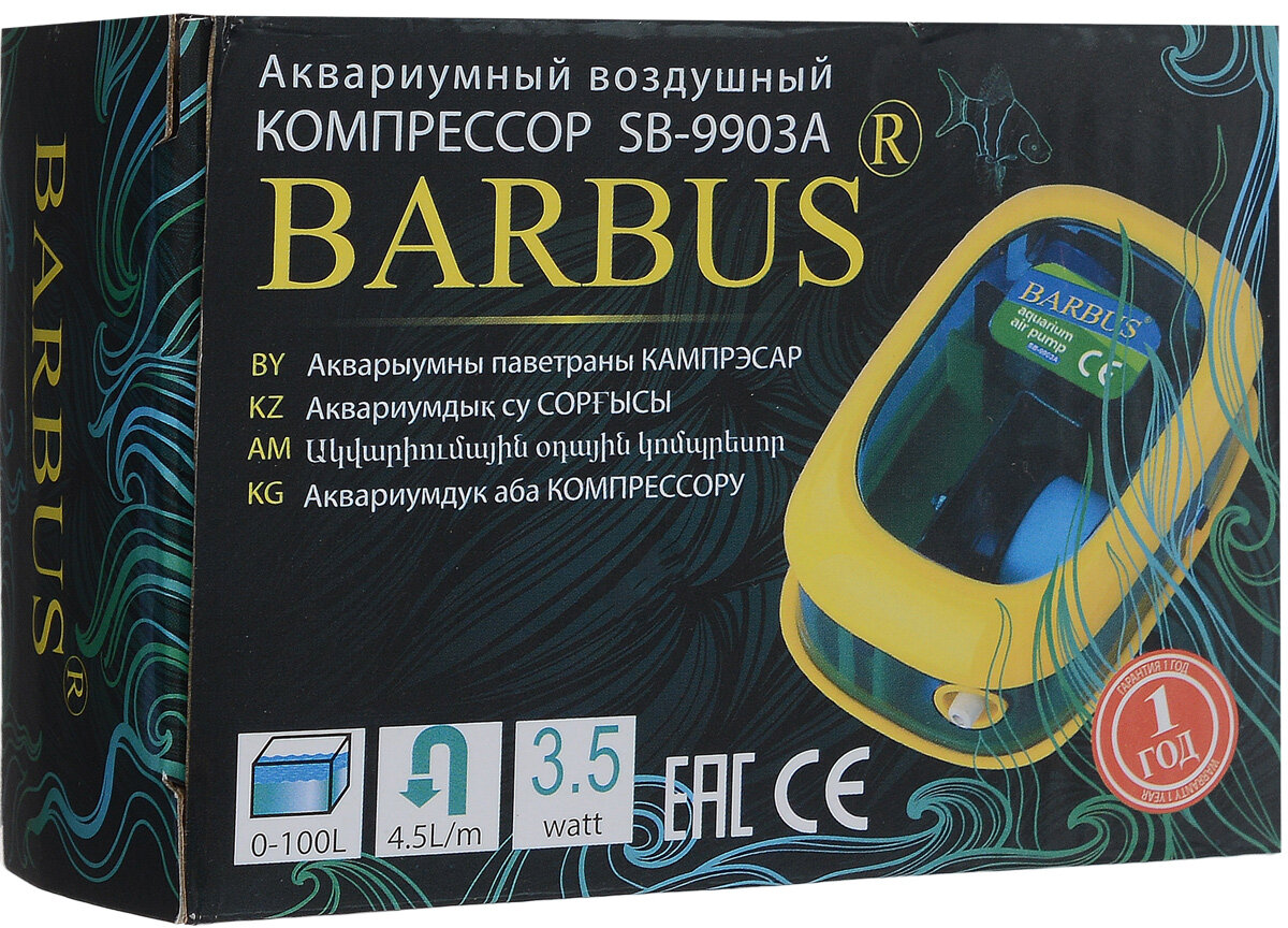 Компрессор воздушный для аквариума Barbus AIR 002, 20-100л, 3,5 л/м, 3w