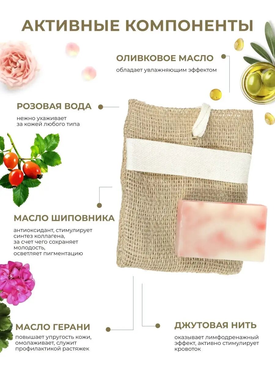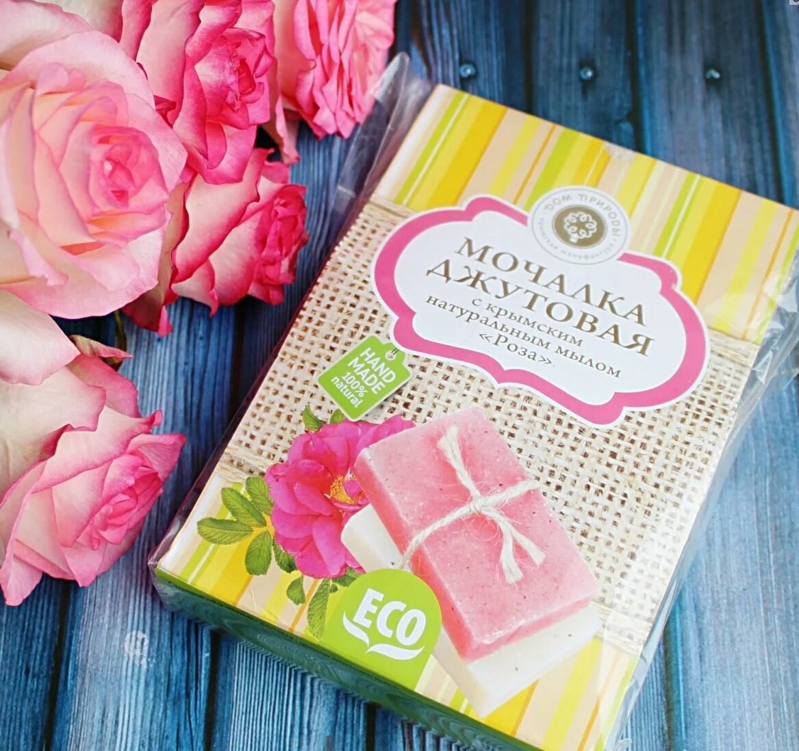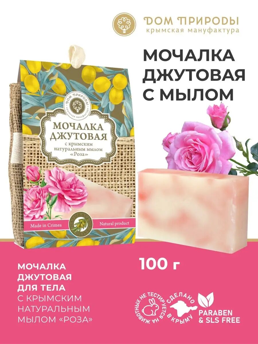 Дом Природы Мочалка джутовая с крымским натуральным мылом Роза бежевая интересное:
