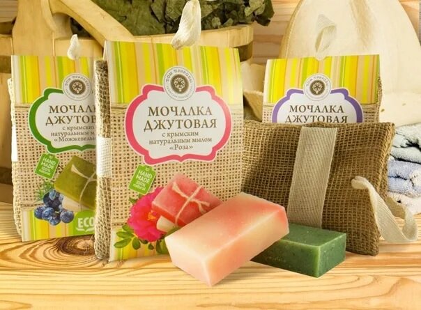 Мочалка джутовая с натуральным мылом Роза . 100% натуральный товар. Крымская косметика.