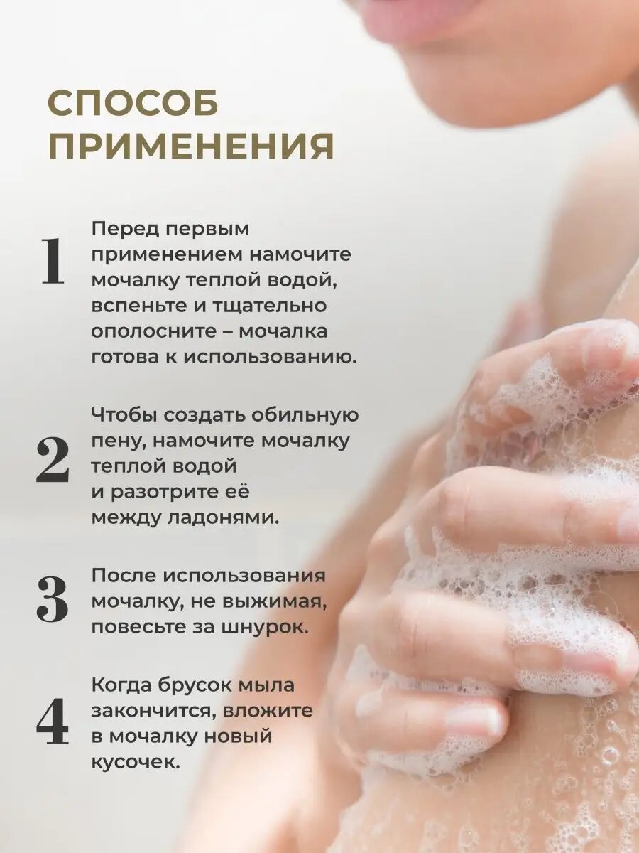 | Плюсы: | Мочалка понравилась. Материал натуральный, скрабирует хорошо, у мылоа запах приятный, кожа после применения гладкая. |