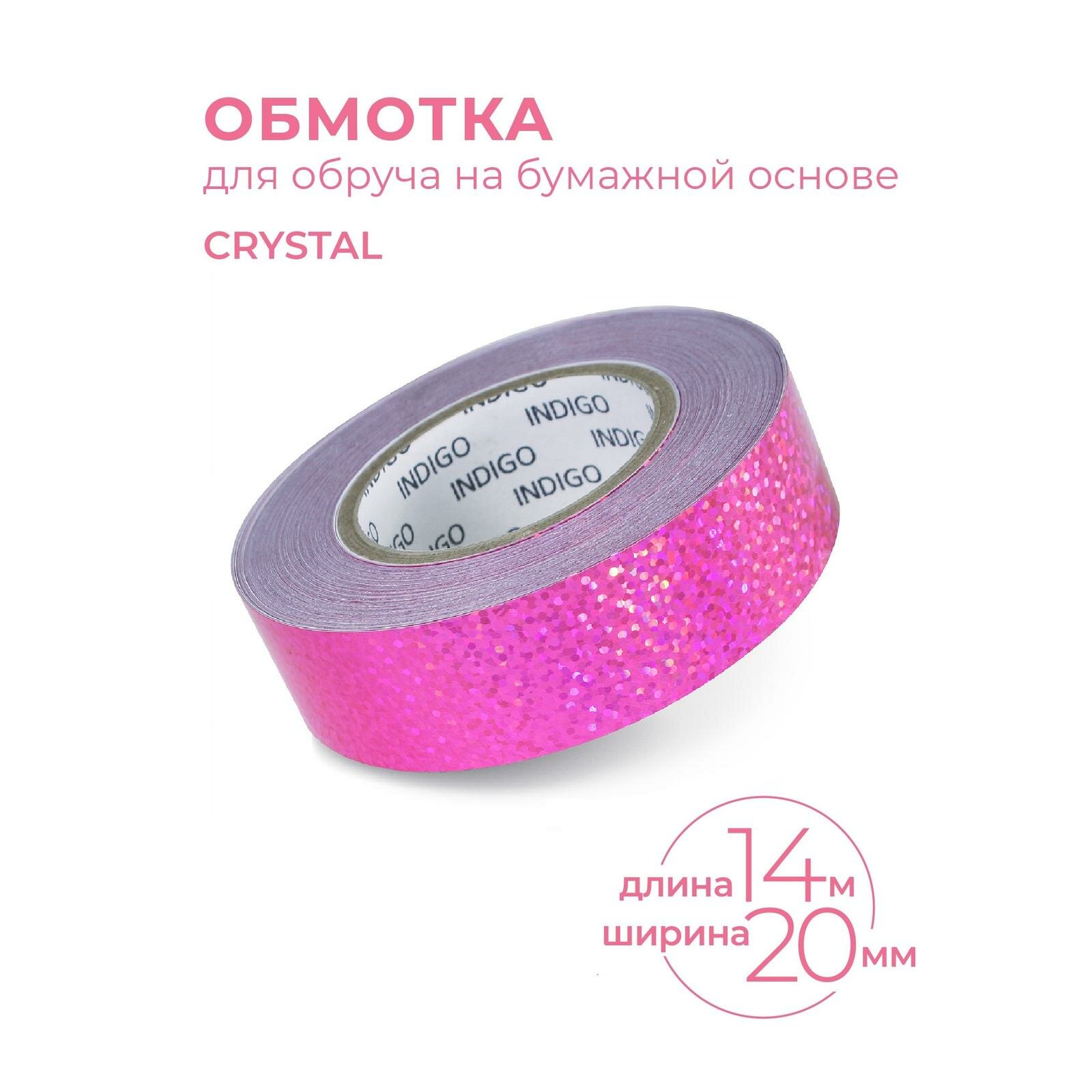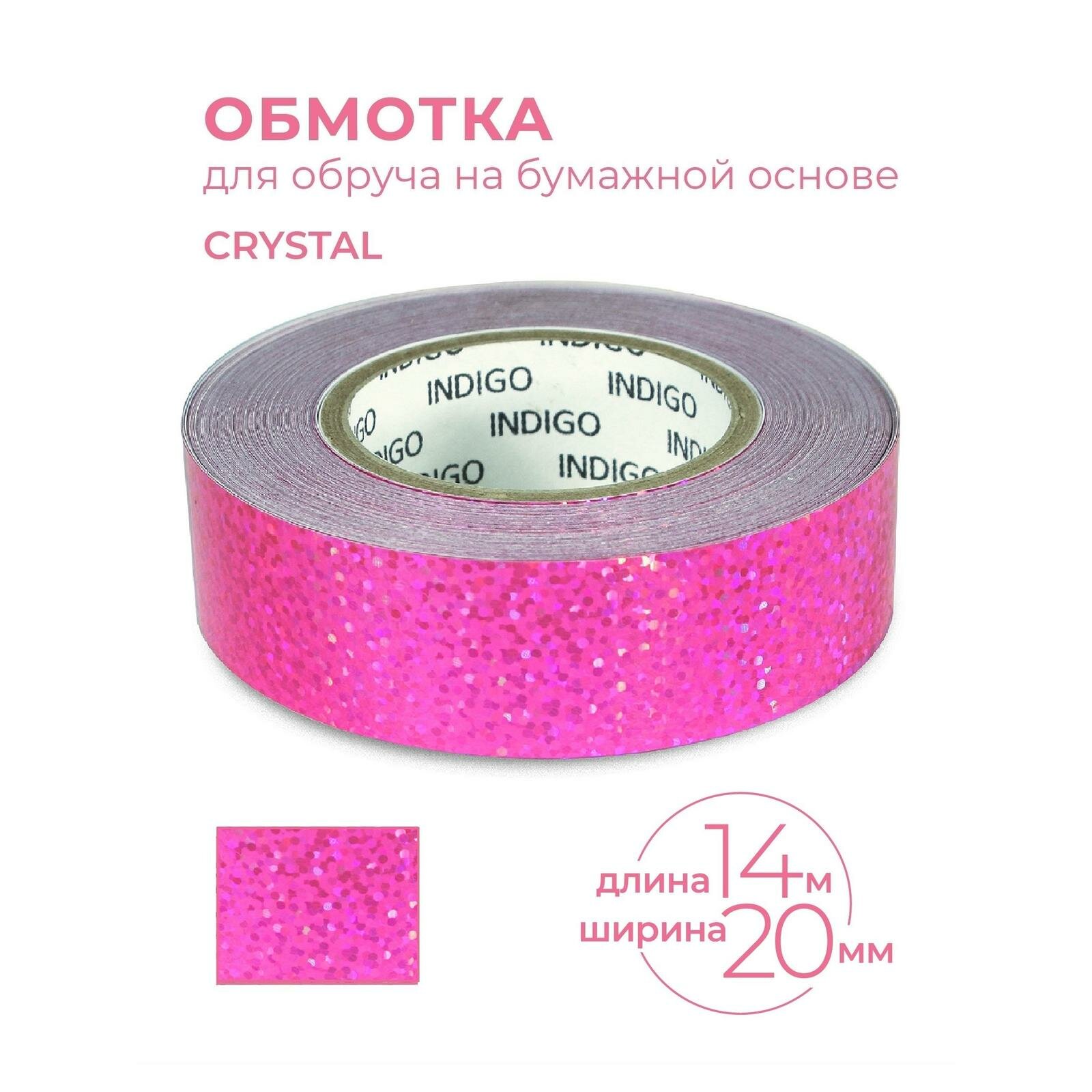 Обмотка для гимнастического обруча INDIGO Crystal, IN139-PI, 20мм*14м, на подкладке, розовый